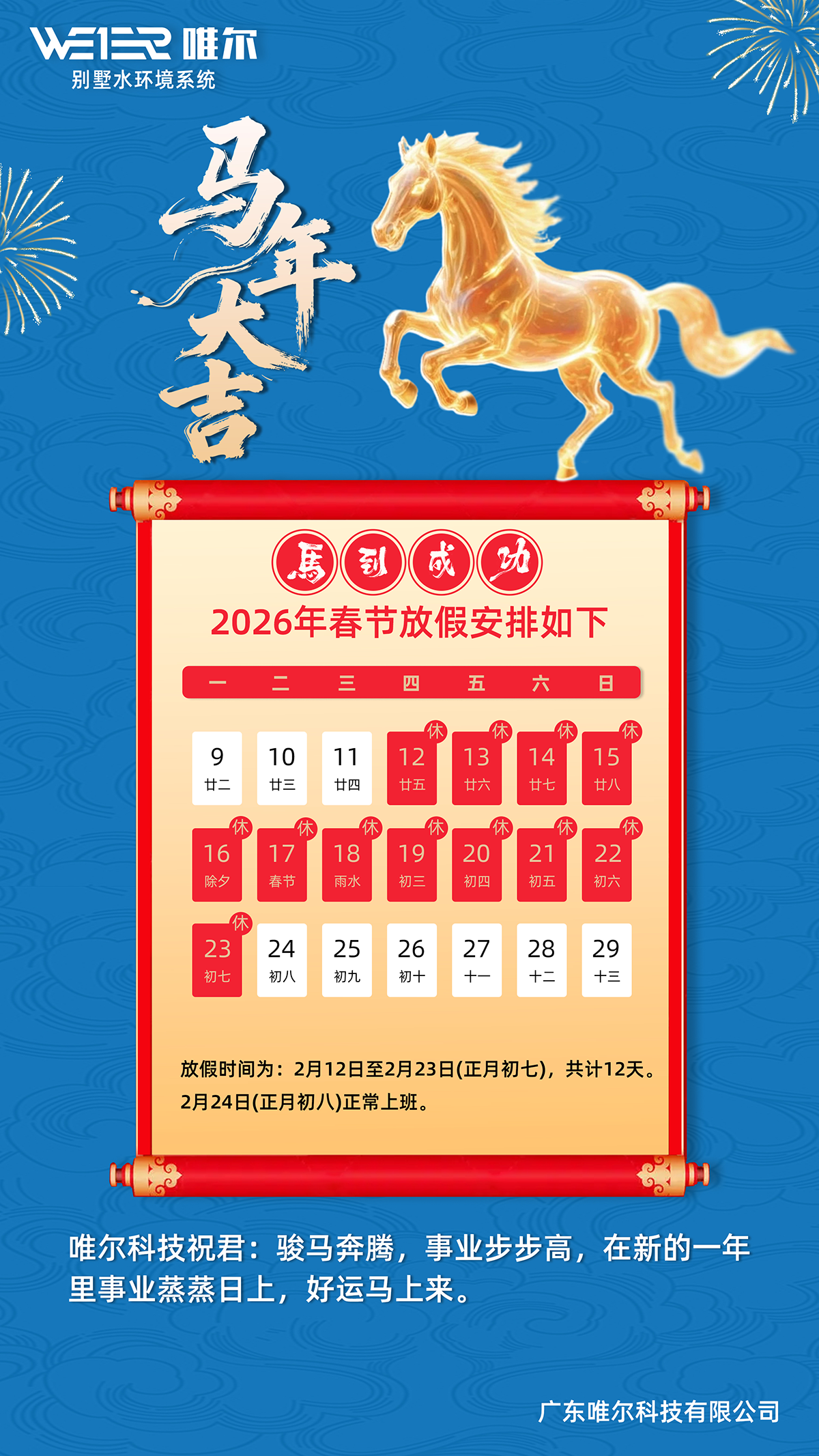 2026唯尔春节放假安排通知